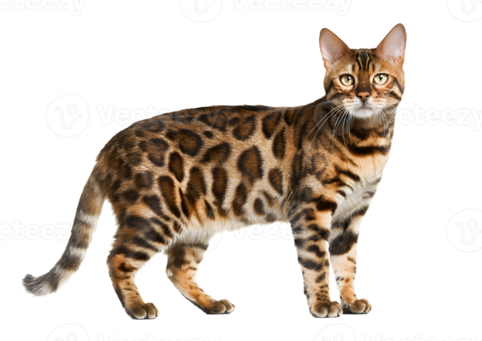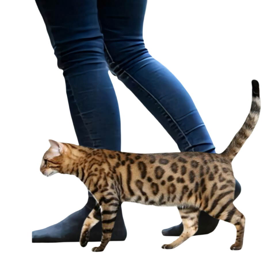 A cat, including a Bengal, holding its tail upright signifies happiness, confidence, and friendly intentions. This behaviour commonly serves as a greeting, indicating the cat’s openness to interaction.