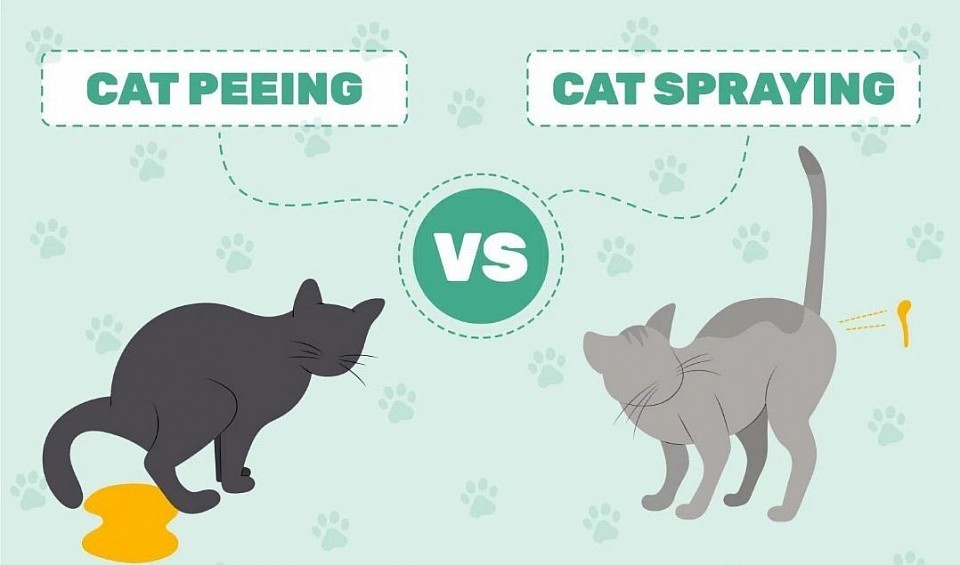 Spraying is frequently associated with intact male cats but may occur in any cat. Inappropriate urination can affect any cat and often signals stress or an underlying medical condition. Both behaviours may necessitate veterinary evaluation and intervention.