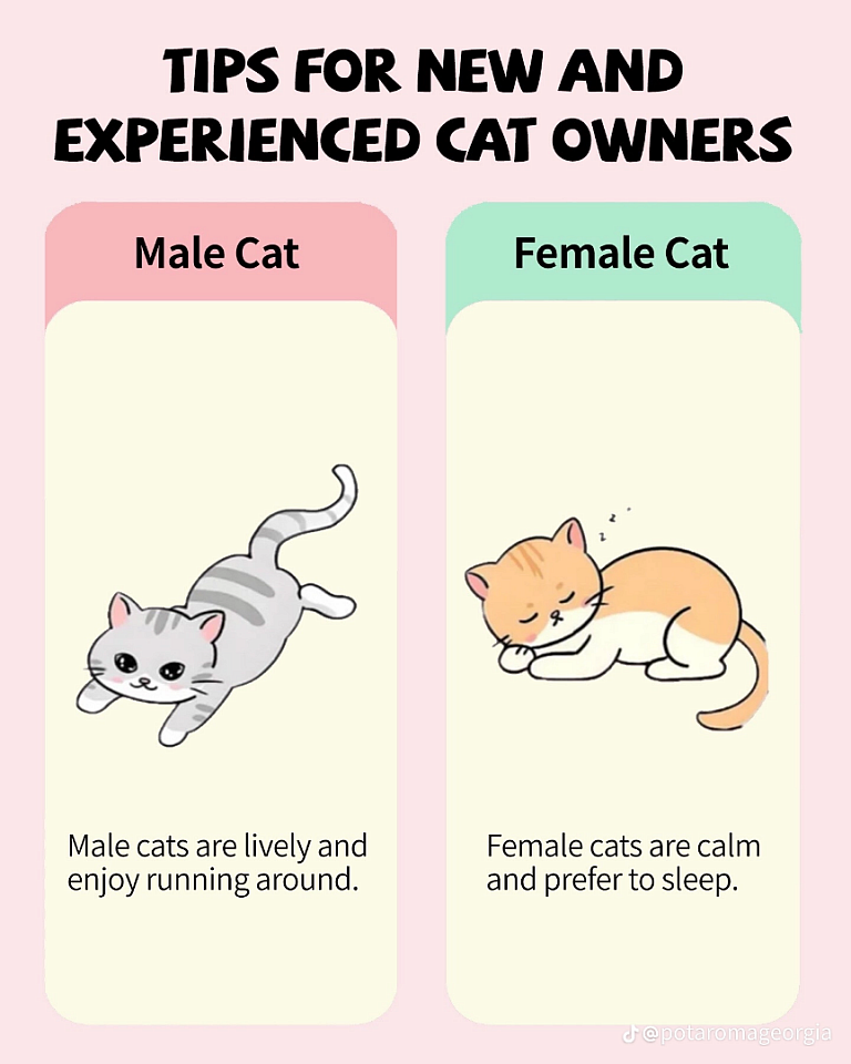 Affection and Sociability: Male cats are frequently perceived as more openly affectionate and social, often seeking attention and enjoying lap time. Female cats can be equally affectionate but may be more selective regarding when and how they express affection. Independence: Female cats are sometimes regarded as more independent and reserved, often preferring personal space and some distance compared to males. However, this is not a universal trait, as many female cats are notably cuddly. Playfulness: Both sexes exhibit playfulness, especially during youth. Male cats may engage more in rough-and-tumble play, whereas female cats might prefer more strategic or hunting-oriented games.