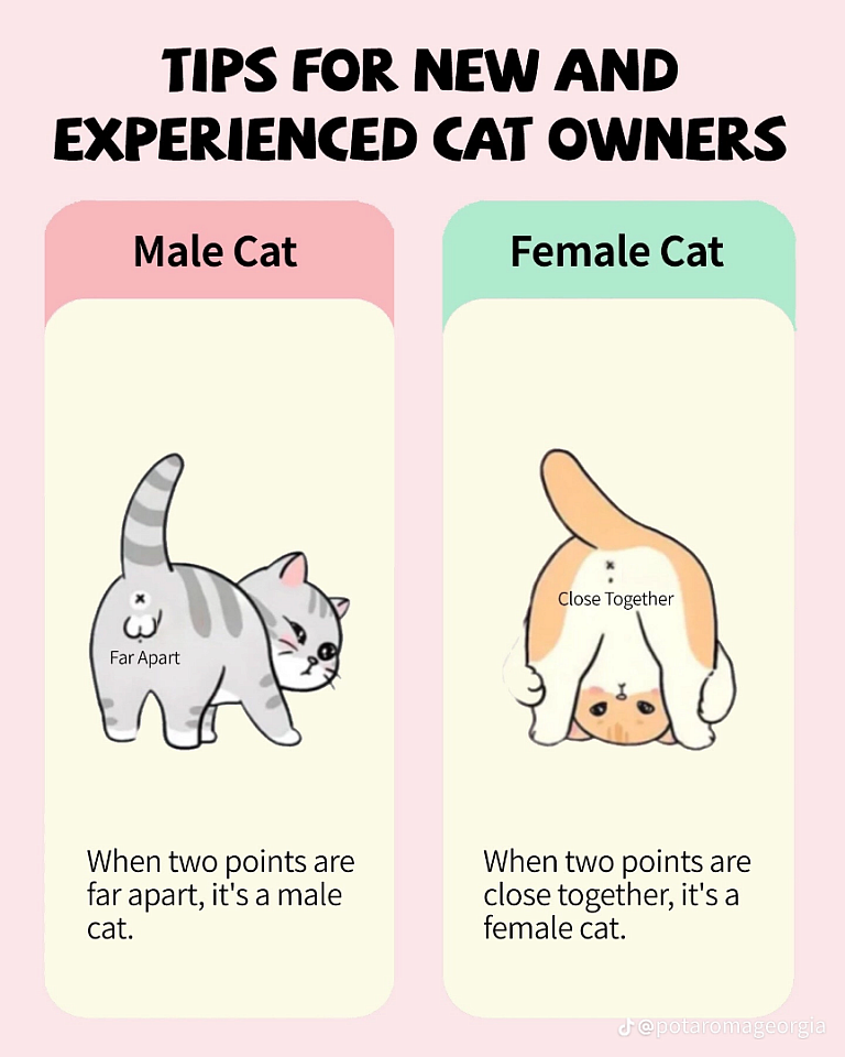 Size and Build: Male cats (toms) are generally larger and more muscular than female cats (queens), featuring broader heads, thicker necks, and greater overall weight. Female cats tend to be smaller and more slender. Facial Features: Intact male cats often develop "stud jowls," a pronounced, thick padding on their cheeks, which is less common in neutered males and absent in females.Vocalisation: Female cats in heat are typically very vocal, producing loud, wailing calls to attract mates; this behaviour ceases in spayed females. Male cats may also vocalise, though their calls usually relate to territorial or mating behaviours and differ in tone.