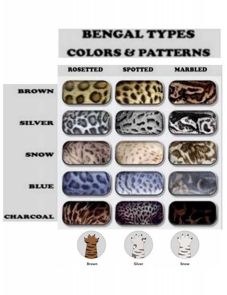 3. Coat Pattern and Colour: Savannahs show off spotted coats in shades from golden to silver and black. Bengals can have spotted or marbled patterns in colours like brown, silver, and snow.