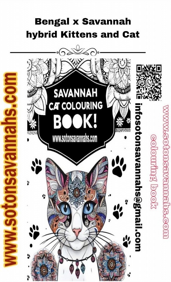 A beautifully illustrated colouring book featuring Bengal × Savannah hybrid kittens. Ideal for relaxation, creativity, and breed appreciation